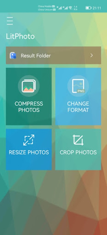 I use this for compressing and sending photos by text or email. The UI is simple and stresmlined allowing you to send the photo to LitPhoto, compress it and send it to text/email/bluetooth all in the app.